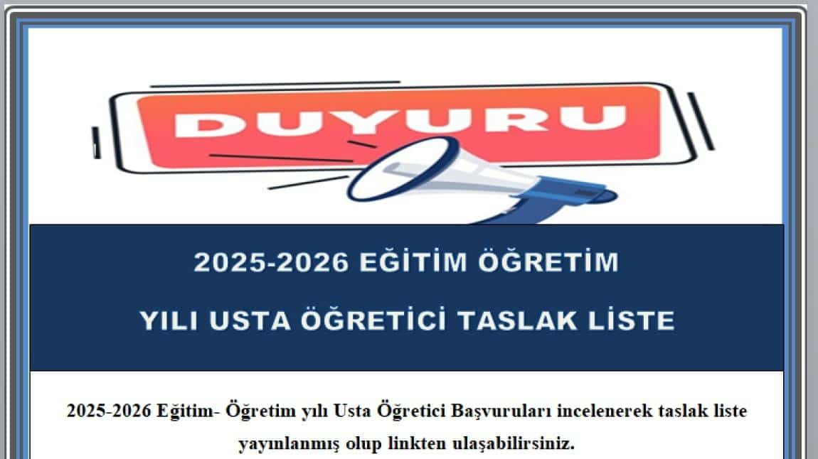 2025-2026 ÜCRETLİ USTA ÖĞRETİCİ SIRALAMA ( TASLAK LİSTE)